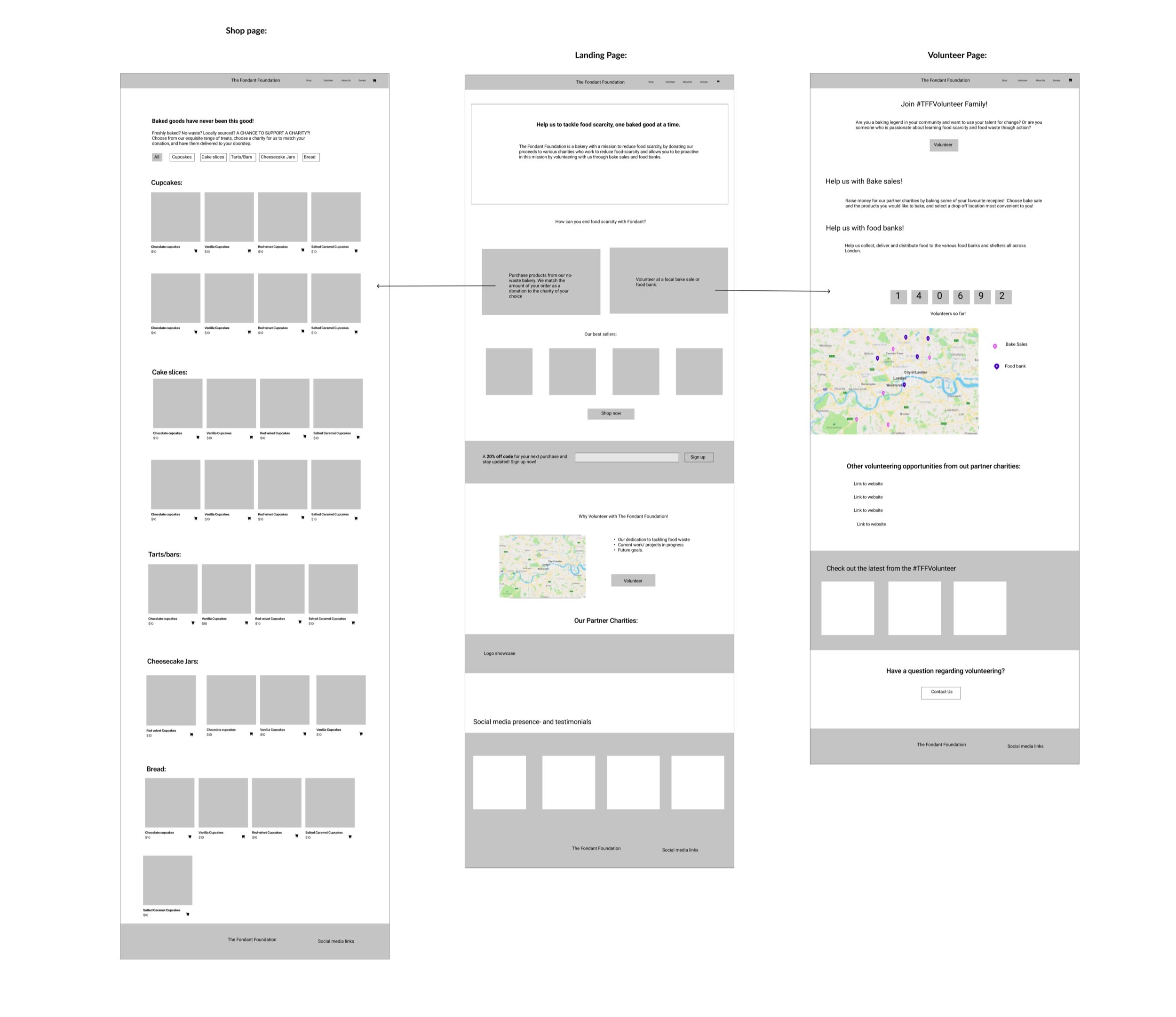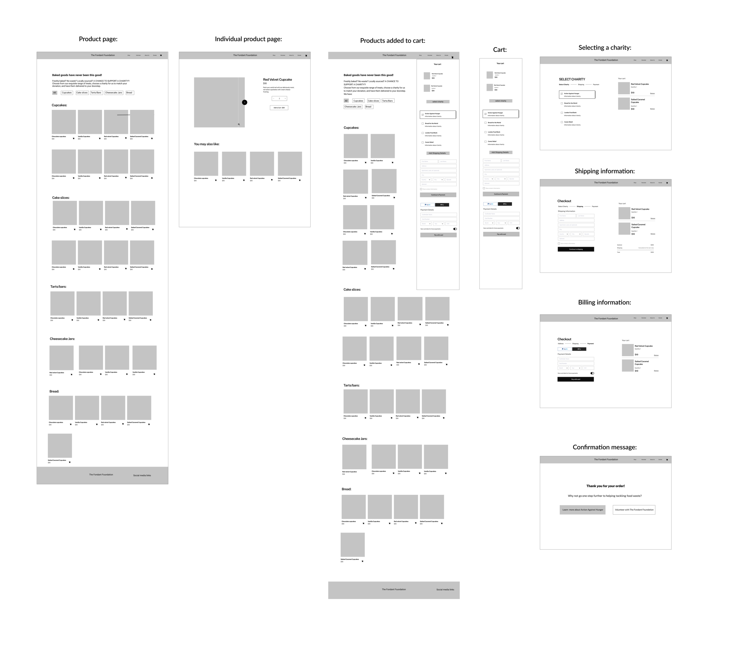 Sketching out wireframes to accommodate not only an e-commerce website but also the charity
