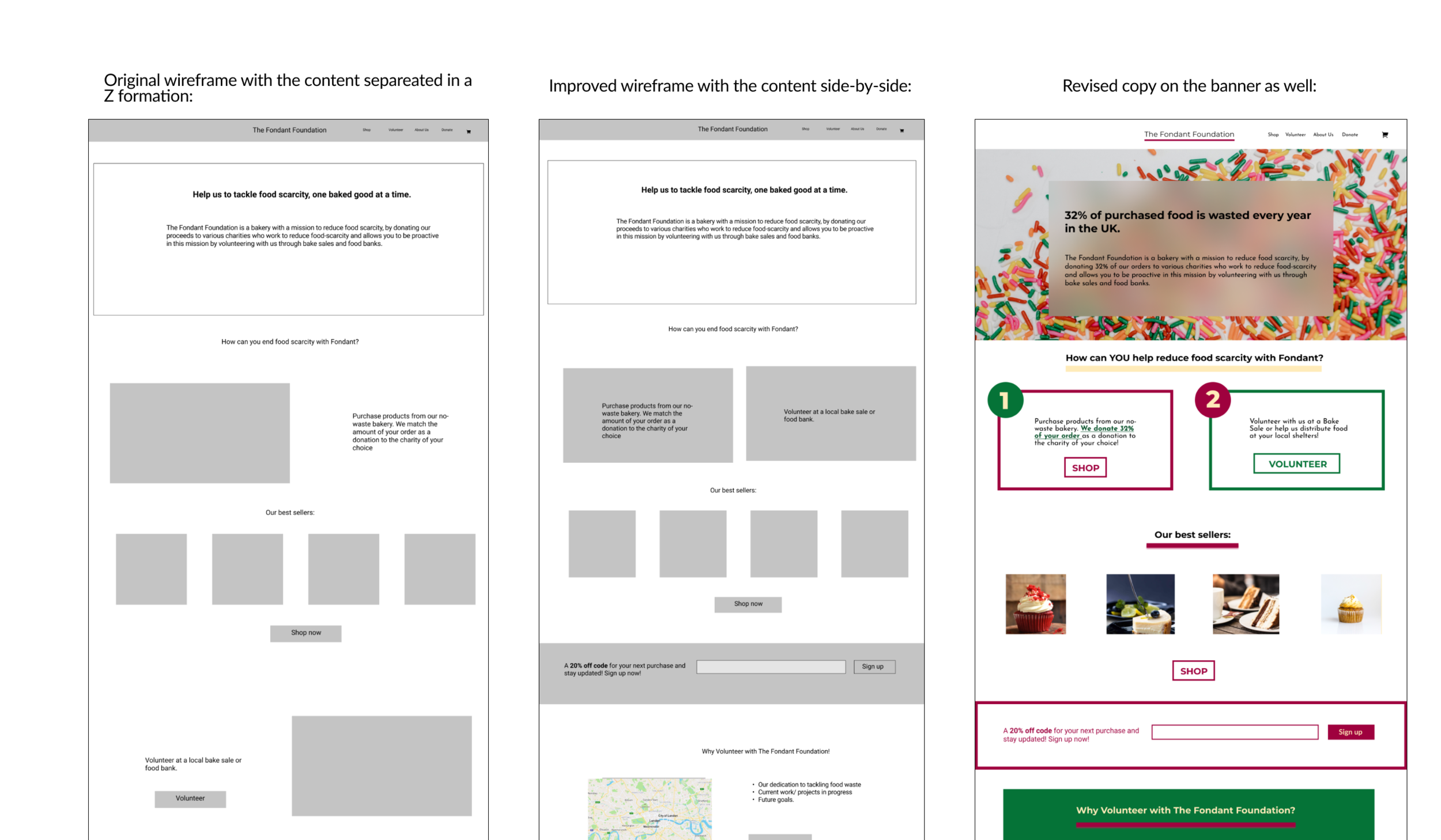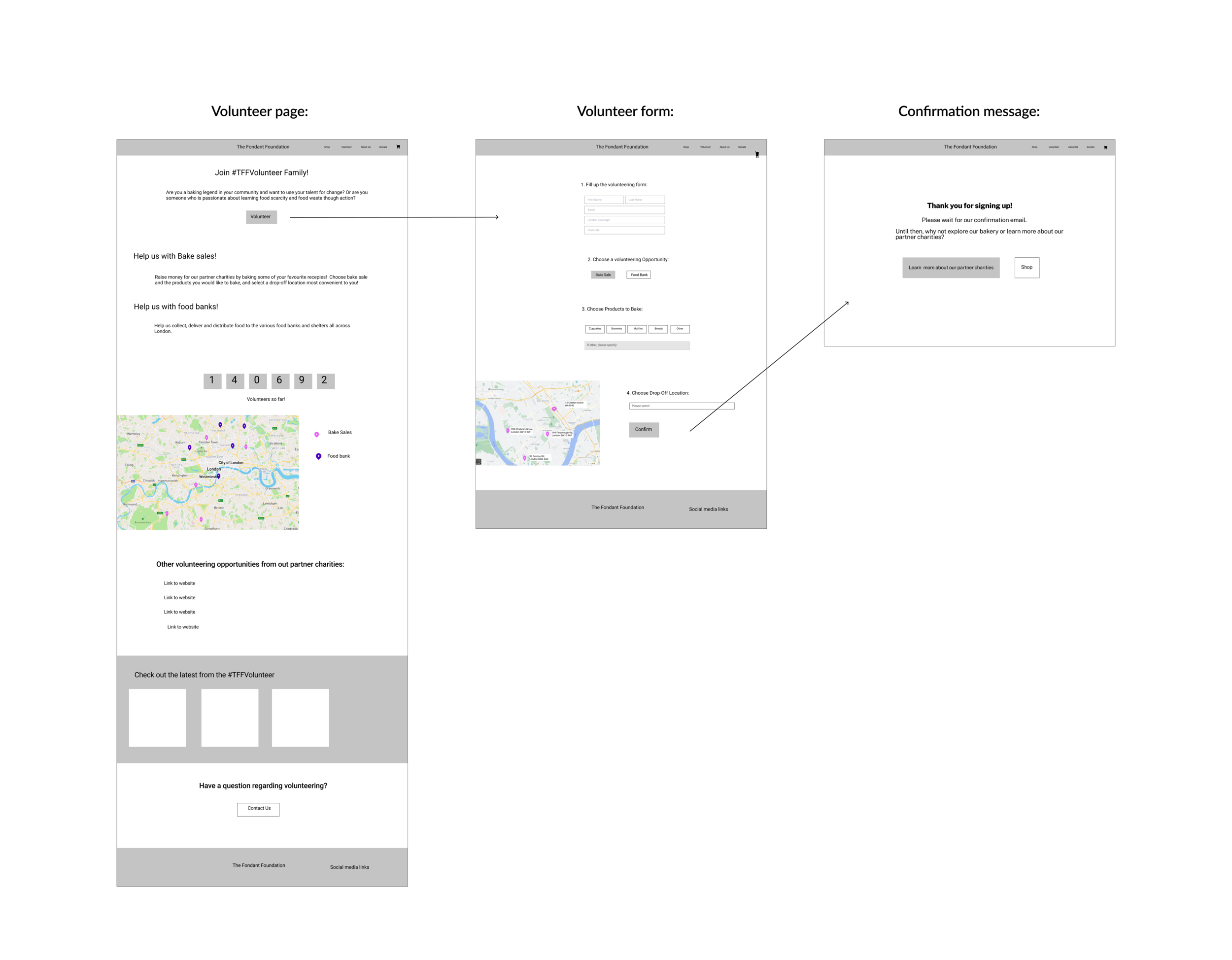 The Fondant Foundation had three target audiences in mind, so we look at 2 potential user flows as they navigate around the website: